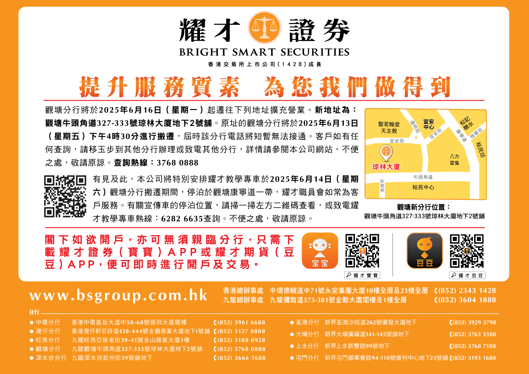 本公司推出多年的「股票分期供款戶口」(L戶口),一直深受客戶歡迎,為使覆蓋範圍更全面,本公司將會為該系統進行大革新進行優化工程; 因此,由202584日起,現行已開立的股票分期供款戶口 (L戶口),將 暫不接受開立新的股票分期供款計劃,已持貨的客戶則只可沽出,直至另行通知